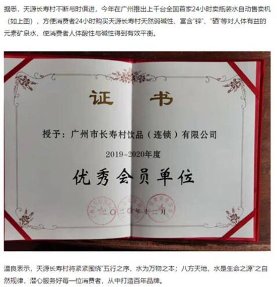 据悉,天源长寿村不断与时俱进,今年在广州推出上千台全国首家24小时卖瓶装水自动售卖机(如上图),方便消费者24小时购买天源长寿村天然弱碱性、富含“锌”、“硒”等对人体有益的元素矿泉水,使消费者人体酸性与碱性得到有效平衡。