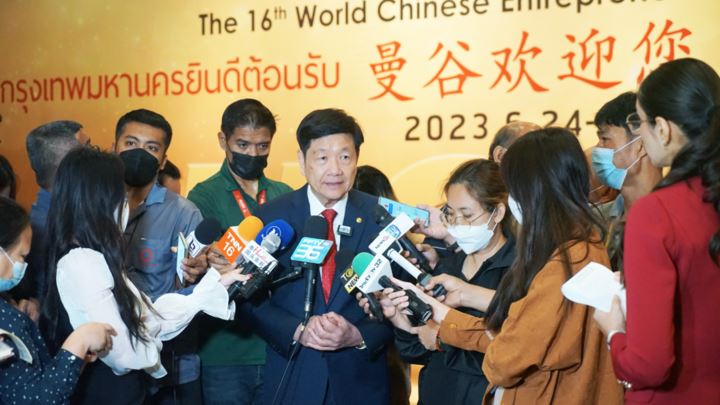 第16届世界华商大会主席、泰国中华总商会主席林楚钦接受媒体采访