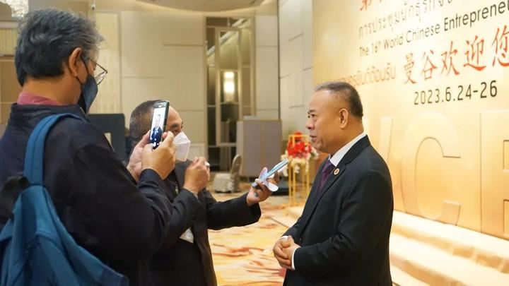 第16届世界华商大会执行主席、泰国中华总商会副主席李桂雄接受媒体采访