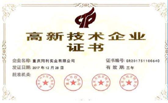 重庆同利将创新成果用于技术标准的建立,进一步引领同行业的其他企业向先进的企业看齐,加快整个公司的技术进步,有利于行业内的良性竞争和共同发展。为促进行业健康发展,重庆同利始终积极参与行业标准制度工作。重庆同利作为主草、参草单位多次参与行业标准制定,其中参与制定行业标准有1项,地方标准有1项,企业标准有2项。“浮管式水力发电机”系列科技成果于2014年通过重庆市科委科技攻关项目结题,并于2016年获重庆市经信委“节能新产品”认证,获得重庆市中小企业局科技成果转化项目,2017年获重庆市计量质量检测研究院型式检验认证及严格的欧盟CE认证,2019年获“渝创渝新设计智造大赛”一等奖。目前重庆同利有四个型号FG-P200 / FG-P600 / FG-P4000 / FG-P8000成功完成产业化生产,正在批量销售。