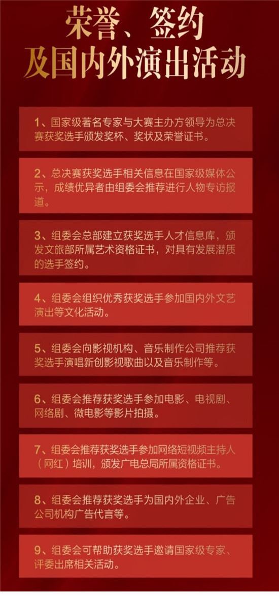 在推广形式方面:赛事活动将通过百余家媒体全面推广,其中包括央视频道、电台、地方电视台、网络、平面等融媒体进行线上线下多方位呈现,现在是互联网高速发展的新时代,大赛将运用抖音、快手视频直播等新媒体平台同步推广。