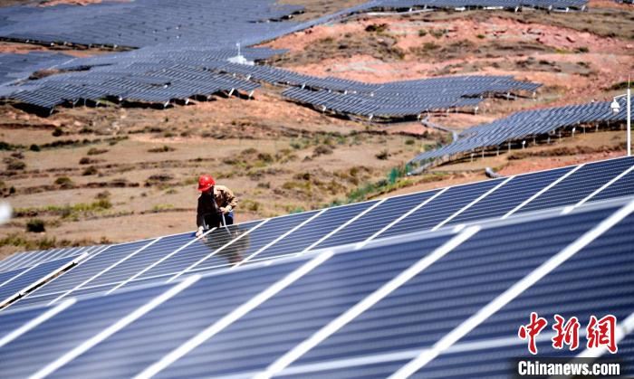 中新网成都5月21日电 (岳依桐)太阳刚升起不久,四川省凉山州喜德县瓦尔西总村村民阿西伍呷便如往常一般,来到修建在村中的通威四川喜德县农光牧光一体光伏扶贫电站上班,作为村里合作社聘请的羊倌,她每日的工作就是放羊。
