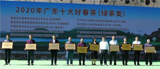 ▲广东省农业农村厅厅长顾幸伟为“2020年广东十大好春茶(绿茶类)”获得者颁奖
